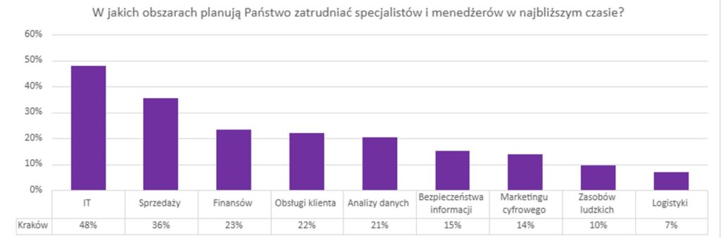 Kraków to miasto, w którym innowatorzy i przedsiębiorcy współpracują z sektorem naukowo-akademickim, rozwijając technologie oraz wprowadzając modernizacje. Jest to jeden z najważniejszych ośrodków branży IT w Polsce. Wśród najbardziej poszukiwanych specjalistów znajdują się eksperci ds. AI, IoT, machine learning, blockchain oraz cyberbezpieczeństwa.